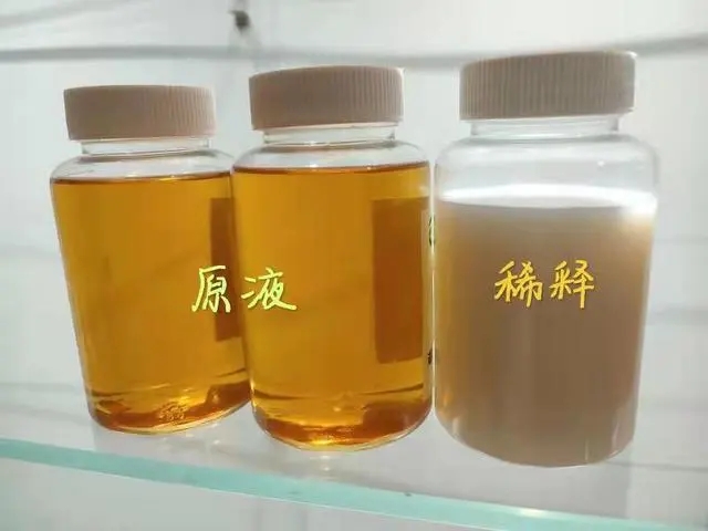 3.稀释水硬度宜用50~150ppm;稀释时将原液慢慢倒入水中,并不断搅拌,防止凝胶化;